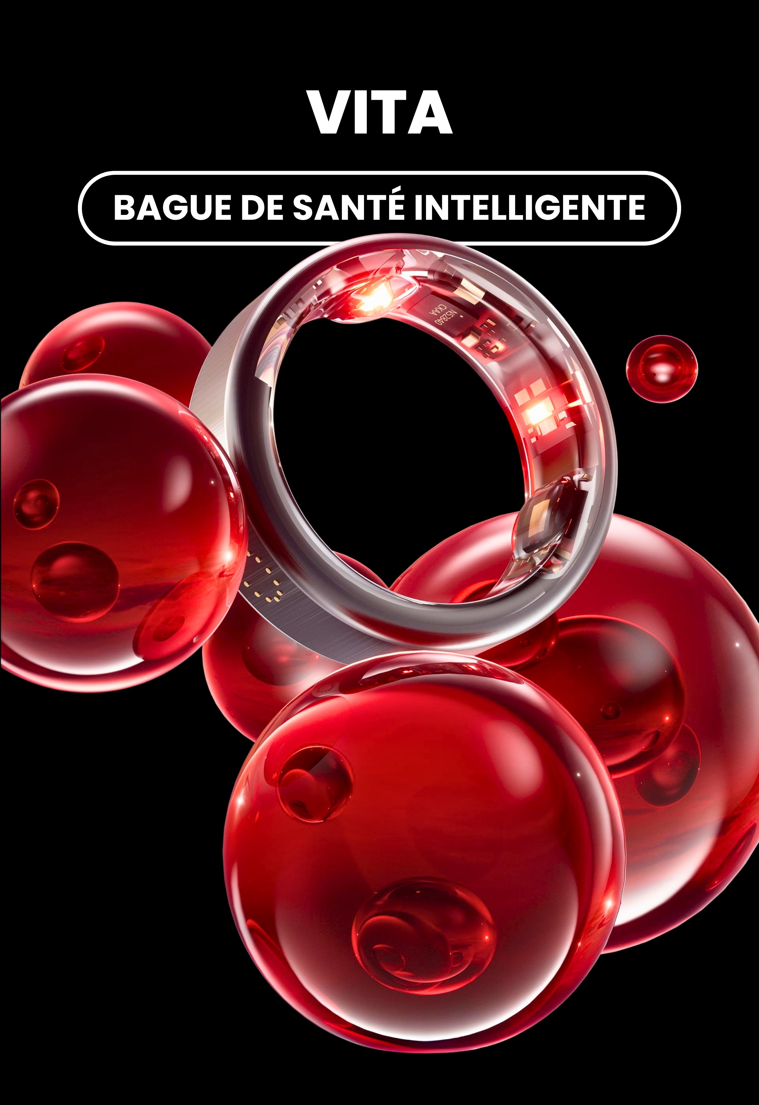 Vita est une bague connectée au design épuré, elle surveille en continu votre rythme cardiaque, vos cycles de sommeil et vos constantes vitales, avec alertes préventives à vos proches pour une sérénité 24 h/24.